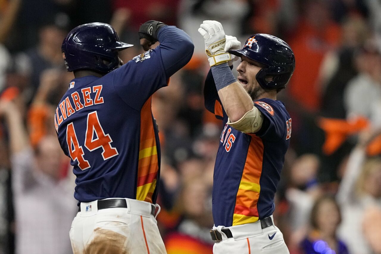 El venezolano José Altuve, el dominicano Jeremy Peña y el cubano Yordan Álvarez conectaron dobles consecutivos para producir las primeras dos anotaciones por los de Houston.