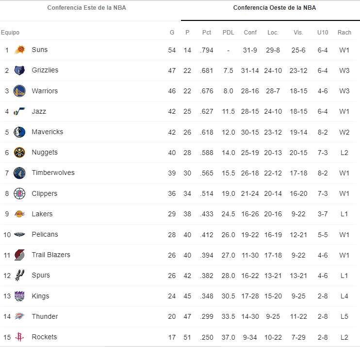 Los primeros cinco lugares de las dos conferencias que conforman la NBA lucen muy parecidos a lo que ya veíamos antes de llegar al All-Star Game, algunos lugares han variado pero todo indica que será complicado ver cambios de aquí a final de temporada.