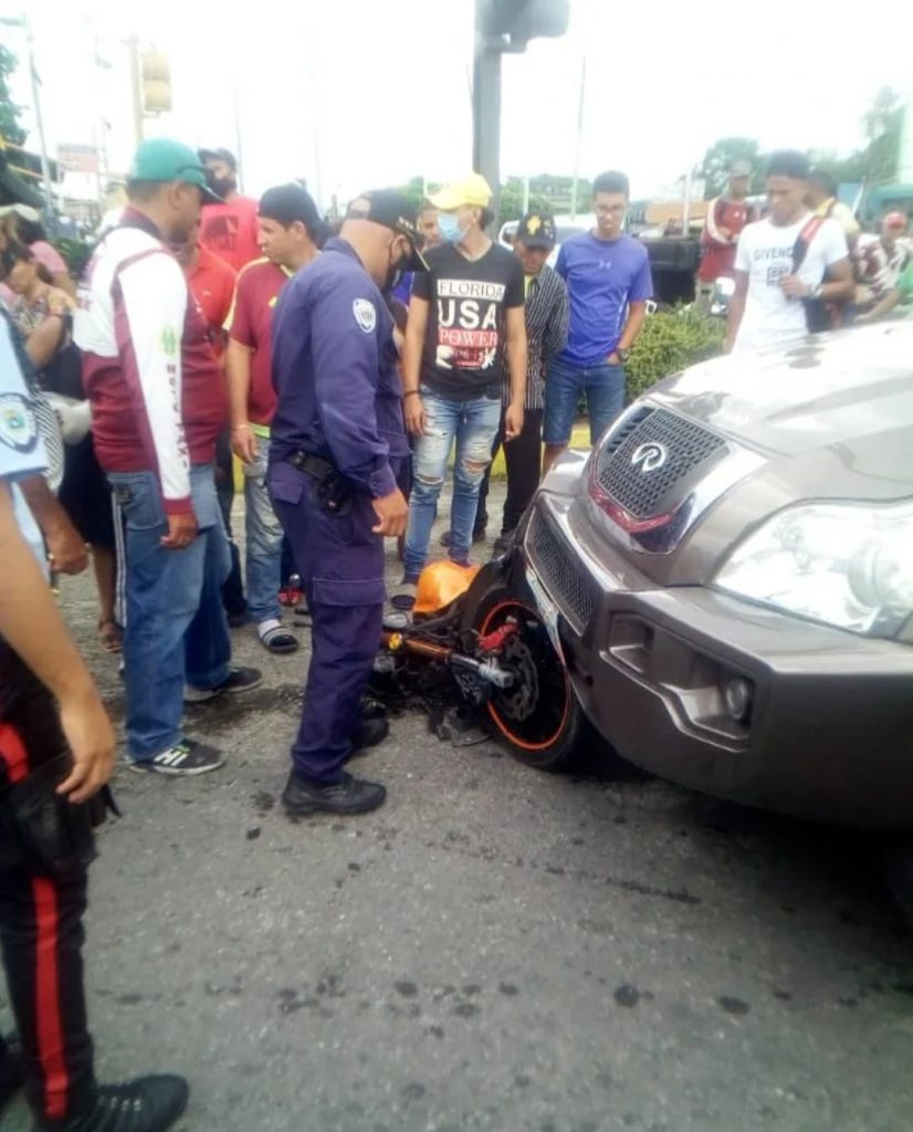 El vehículo involucrado en el arrollamiento, marca Tiuna de color dorado, conducido por un ciudadano de 40 años de edad quien salió ileso. Al sitio acudió una comisión de la Policía Nacional Bolivariana, PNB Caja Seca que se encargó del hecho vial.