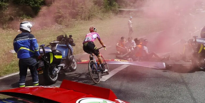Manifestación ecologista casi genera accidente en el Tour de Francia