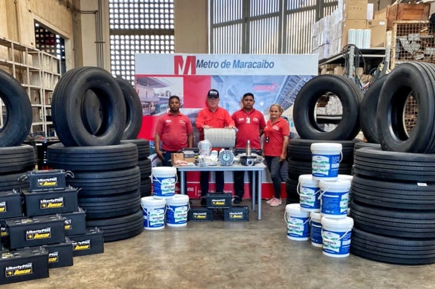 El G/D Miguel Ramírez González, presidente del Metro de Maracaibo, recibió de la Yutong Venezuela en la persona del Tcnel Hector Rojas. Buenas Bendiciones este sábado 22 de octubre, con otra dotación de repuestos para la reparación de su flota de autobuses.Con esta asignación de baterías, cauchos, repuestos y aceite se busca elevar la operatividad de este importante medio de transporte superficial.