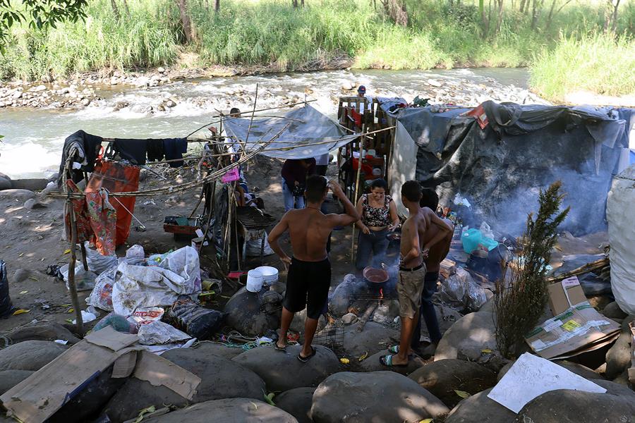 Migrantes venezolanos, nicaragüenses, hondureños, haitianos y colombianos, han creado una colonia irregular a orillas del río Coatán y el malecón de Tapachula, en su paso por la frontera sur de México.
