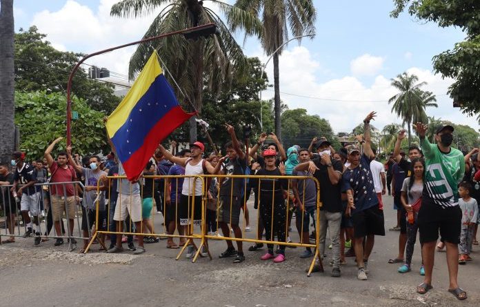 Migrantes venezolanos y de otros países bloquean calles para presionar permisos temporales en sur de México