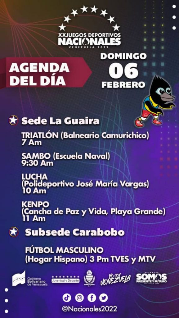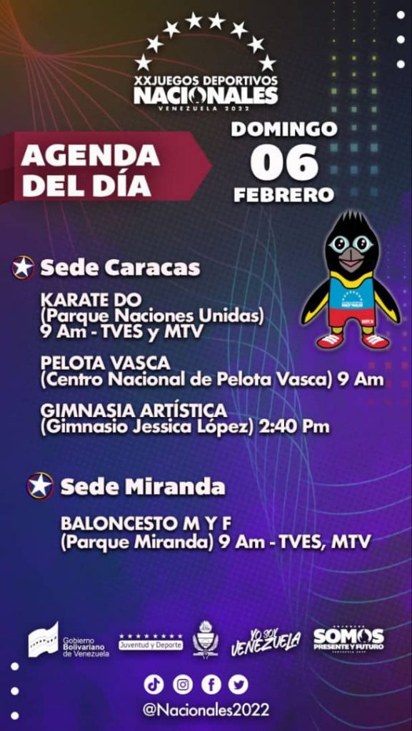 La sede La Guaira verá acción en tres actividades mientras tanto, Caracas será la encargada de llevar tres disciplinas, por último la sede Miranda acogerá una.