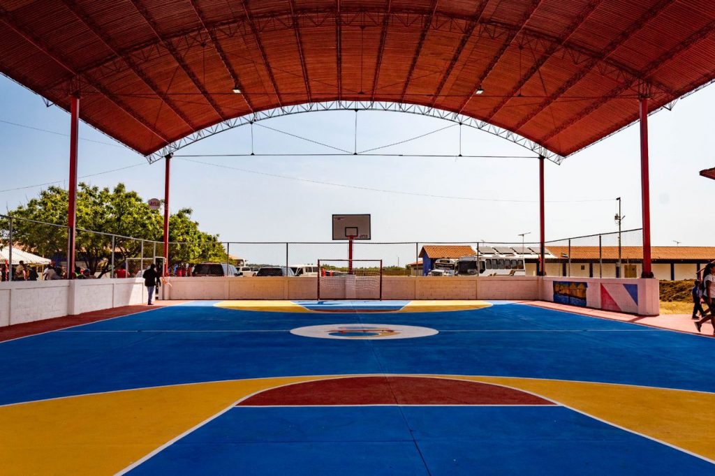 Iluminada, colorida, con techo nuevo y completamente renovada, fue entregada por la Misión Venezuela Bella, la cancha de usos múltiples Escuela Agro Técnica Pesquera Kanu Ayu, en el sector La Soledad, ubicado en la parroquia San Rafael, municipio Mara, estado Zulia.
