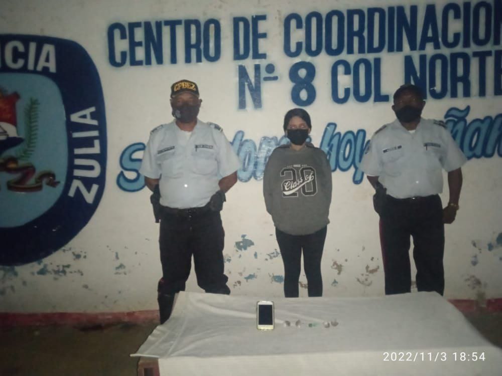 Indicó el C/J Sergio Villasmil, director general del Cuerpo de Policía del estado Zulia (Cpez), que una vez le realizaron una inspección corporal a la detenida se le encontró entre las vestimentas cinco envoltorios tipo cebollita con restos vegetales de presunta marihuana, con un peso de diez gramos.