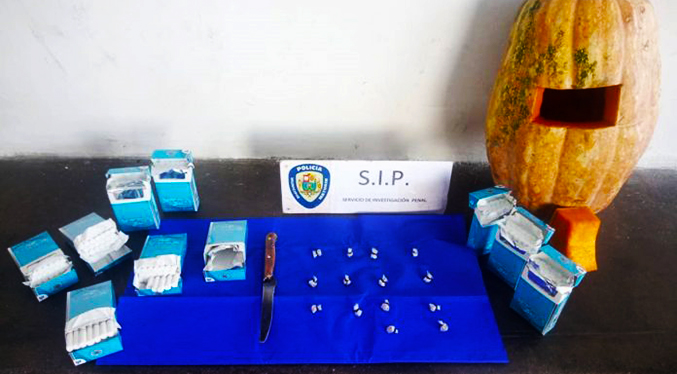 La mujer pretendía entregar el contrabando a su hermano, que está detenido en el mencionado centro de reclusión, pero fue descubierta en el chequeo rutinario cuando funcionarios se percataron de que dentro de la auyama había algo.