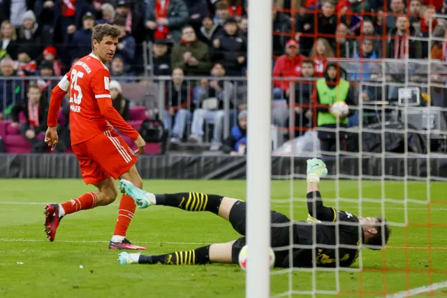 Muller firmó un doblete para sentenciar el choque en veinte minutos. Antes, Kobel había propiciado la apertura del marcador. Kinglsley Coman selló la goleada y el Bayern arrebató el liderato de la competición a su rival que maquilló el marcador en el tramo final con un pentli transformado por Emre Can y el tanto de Donyell Malen.