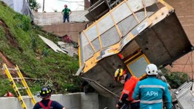 Una persona falleció y tres más quedaron heridas tras el desprendimiento de un ascensor de carga en un edificio residencial en construcción de más de 15 pisos en El Poblado en el sector La Linde, Medellín.