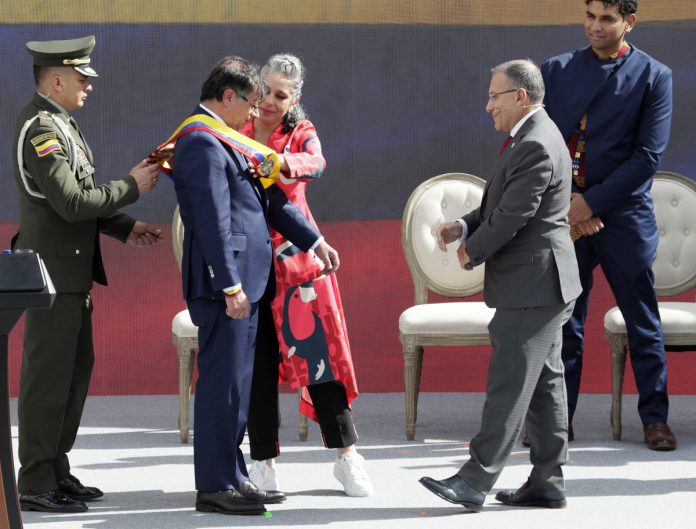 El nuevo presidente de Colombia, Gustavo Petro, ordenó este domingo, como su primer acto de Gobierno, que la espada del Libertador Simón Bolívar, un símbolo de su lucha guerrillera y luego política, sea llevada a la tarima donde se lleva a cabo la ceremonia de investidura.