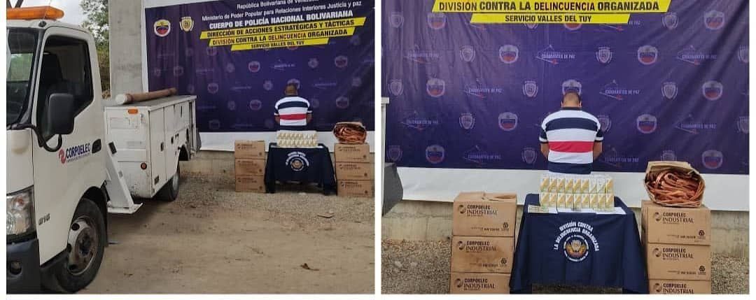 Un técnico de Corpoelec, adscrito al Ministerio del Poder Popular para la Energía Eléctrica, fue detenido por funcionarios de la División Contra la Delincuencia Organizada del Cuerpo de la Policía Nacional Bolivariana (CPNB), por el delito de tráfico de material estratégico, en Cúa, municipio Urdaneta, la mañana del sábado 15 de abril.
