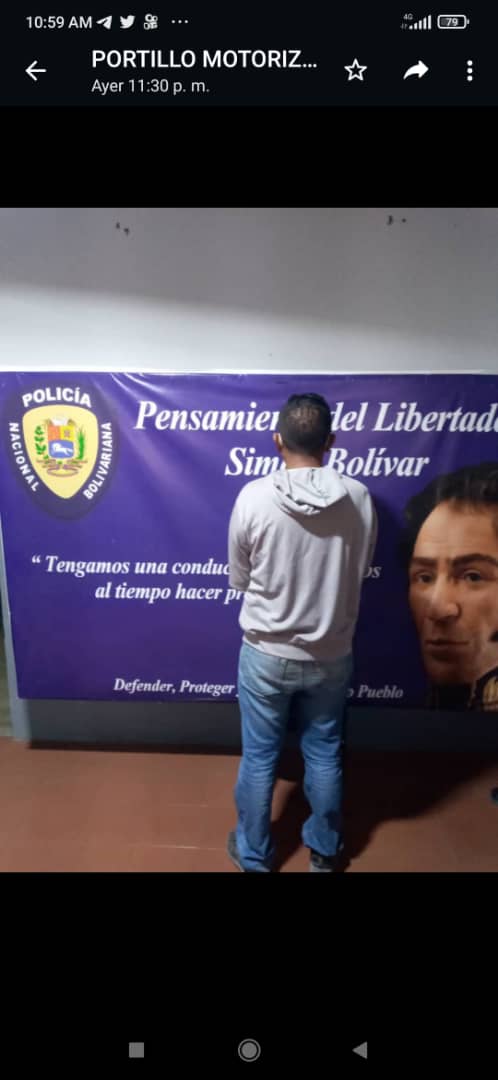 Funcionarios de la Policía Nacional Bolivariana, adscritos a la Estación Policial Cañada de Urdaneta mediante un dispositivo de verificación de ciudadanos aprehenden a José Gregorio Machado (38) por arrojar solicitud ante el sistema Siipol por el delito de desertor