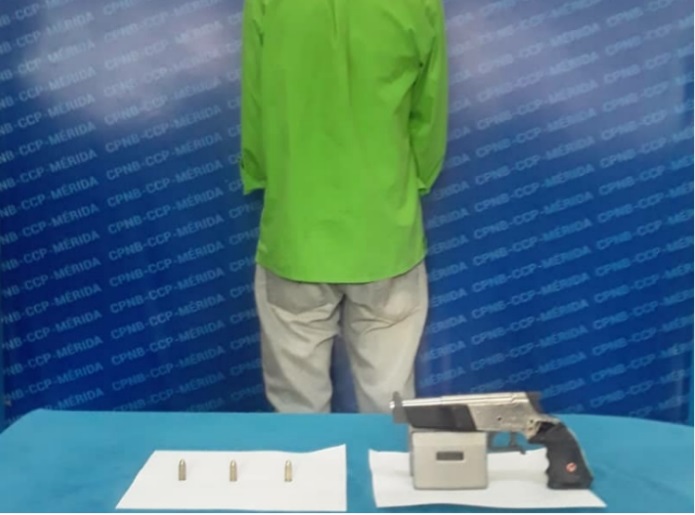El sexagenario fue apresado en el municipio Libertador, quien tenía en su poder una pistola calibre 9 milímetros con tres proyectiles del mismo diámetro sin percutir.