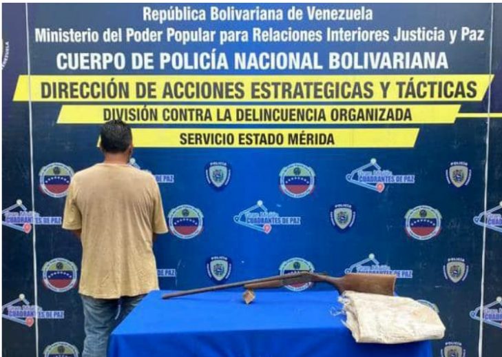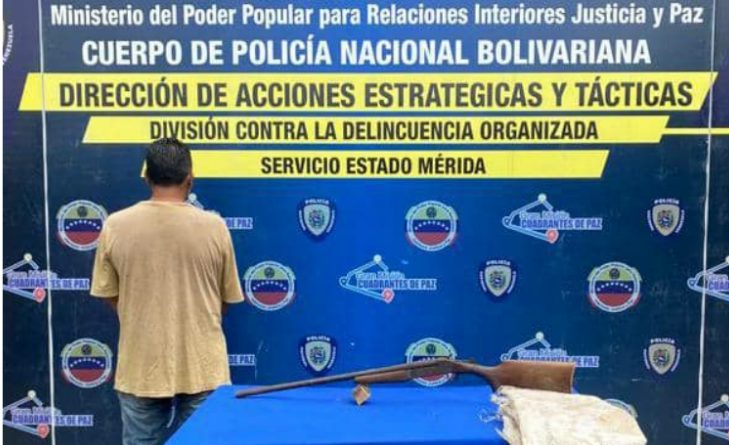 En el sector La Vega de El Vigía, en el municipio Alberto Adriani arrestaron al individuo de 52 años, a quien le incautaron una escopeta, calibre 16 milímetros, que llevaba camuflada en un saco de color blanco.
