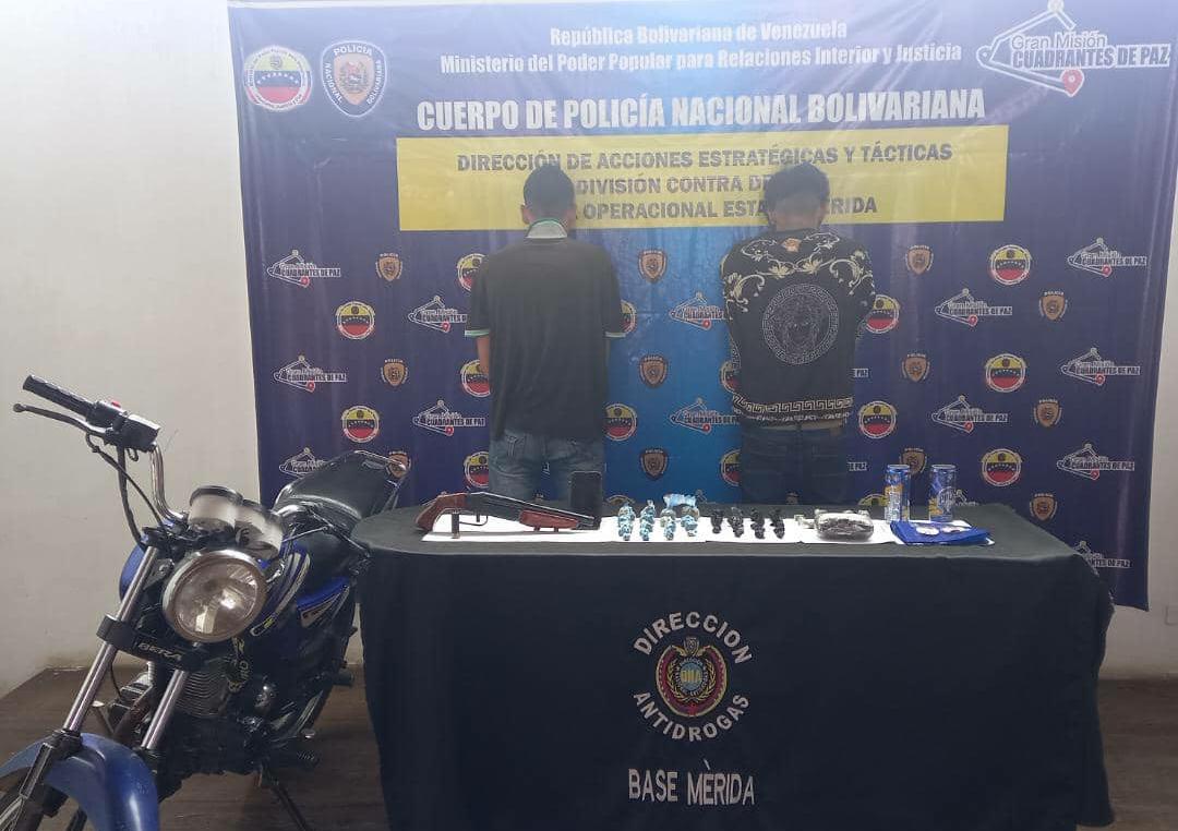 El procedimiento fue hecho por funcionarios adscritos a la Base Operacional Mérida de la División Contra Drogas de la Policía Nacional Bolivariana (PNB), quienes estaban cumpliendo con las políticas en materia de seguridad emanadas por el gobernador Jehyson Guzmán, el presidente Nicolás Maduro y el director del Centro de Coordinación Policial (CCP) Mérida de ese organismo, Rafael Yépez Rojas.