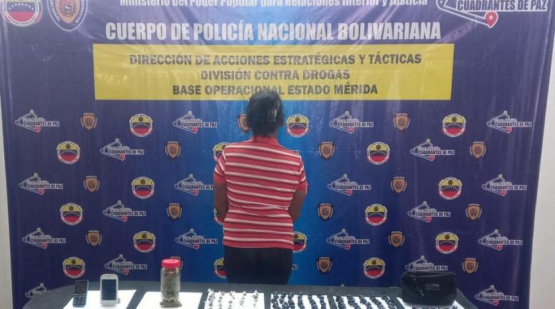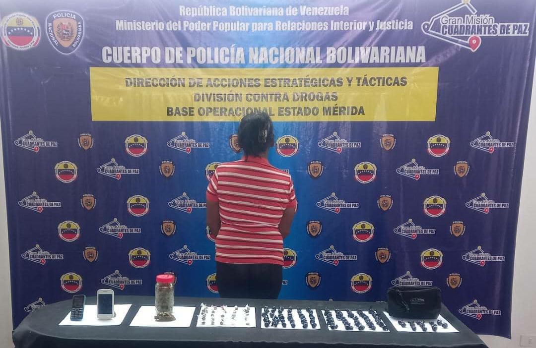La mujer fue apresada en horas de la tarde de este sábado en el sector La Hoyada de los Azules, en Lagunillas, municipio Sucre, luego de un trabajo de inteligencia desplegado por los uniformados.