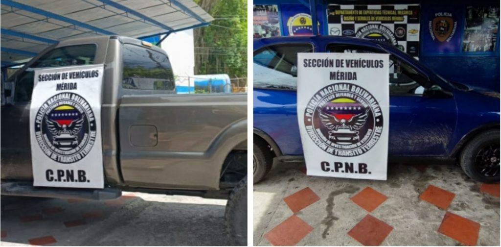 En la capital merideña recuperaron una camioneta Ford F-250, color gris, y un Chevrolet Corsa, color azul, por tener alterados los seriales del motor.