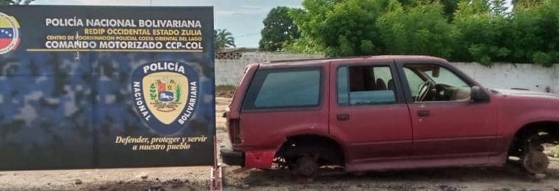 Efectivos de la Costa Oriental del Lago de la Policía Nacional Bolivariana recuperan un vehículo abandonado en el sector la Chinita, parroquia Santa Rita del estado Zulia.