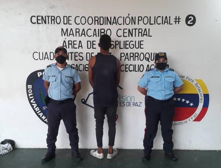 Durante un patrullaje preventivo por la avenida Universidad de Maracaibo, efectivos del Centro de Coordinación Policial Maracaibo Central, capturaron a Jesús Exagio Montiel Álvarez de 21 años de edad, quien en primera instancia fue arrestado por ultraje a funcionario policial, pues ante la presencia de éstos tomó una conducta agresiva y hostil lanzado golpes de puño y palabras contra los uniformados.