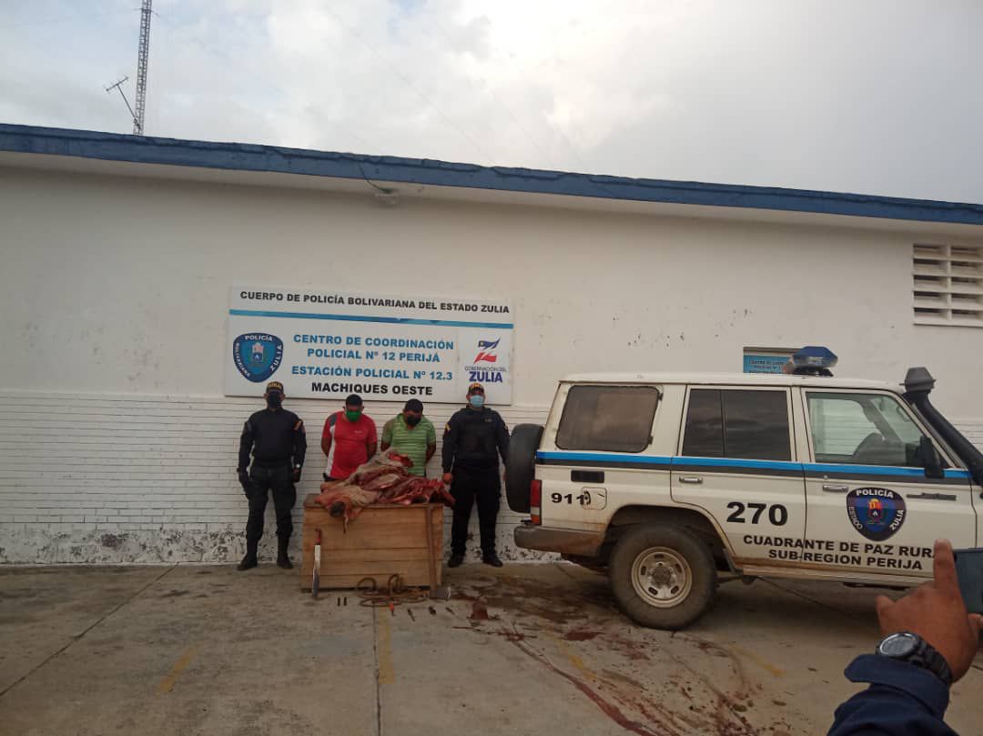 Luego de conocer la denuncia sobre los constantes robos de reses en predios de la zona, los uniformados iniciaron una serie de averiguaciones que los condujeron hasta un lugar enmontado del sector Socolo, del municipio Machiques de Perijá, donde sorprendieron a dos sujetos cuando sacrificaban un vacuno, de inmediato fueron llevados al comando.