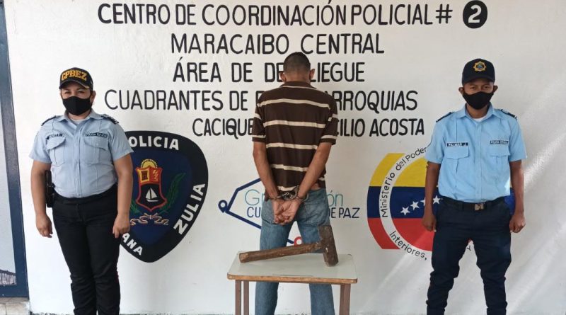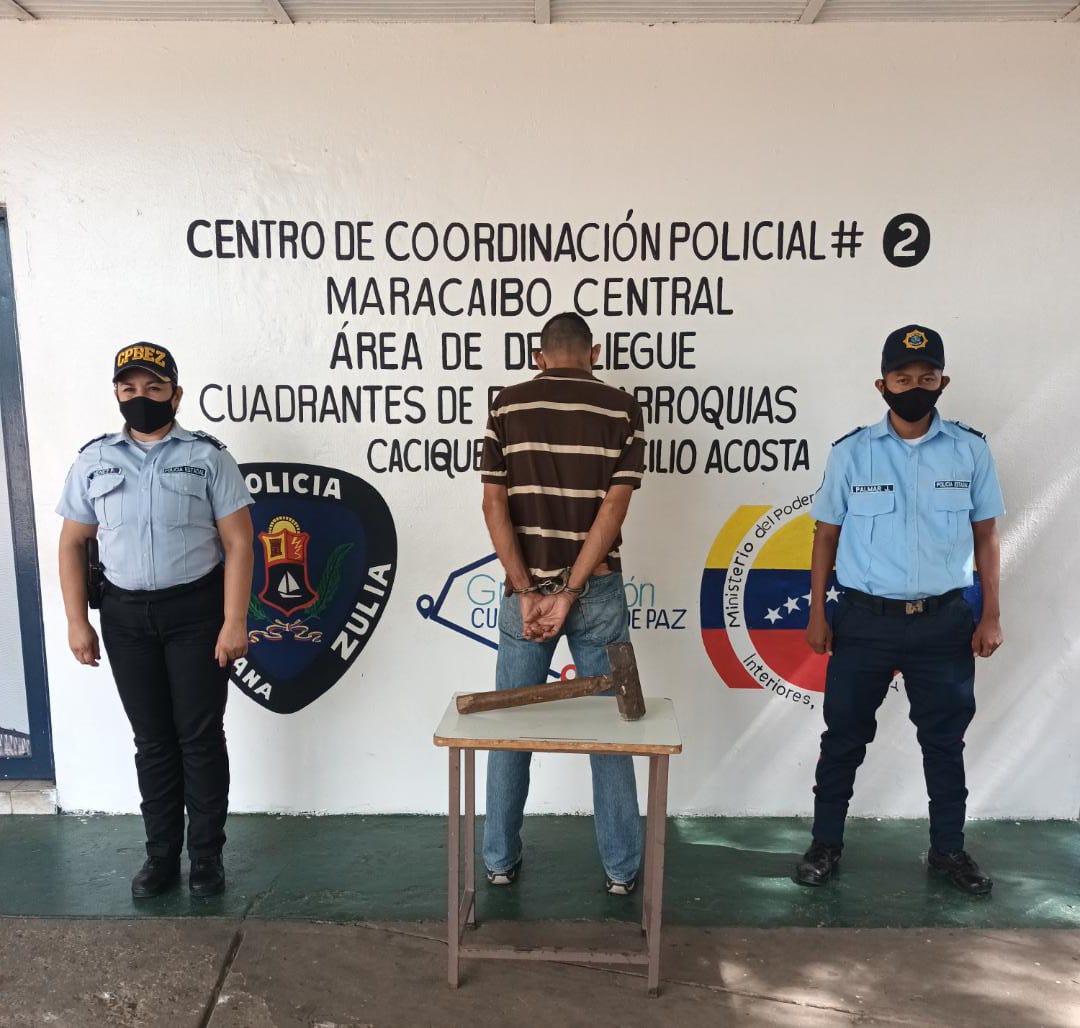 Una comisión del Centro de Coordinación Policial Maracaibo Central, procesó la detención de Alirio José García Pérez, de 42 años de edad, denunciado por su hermana de agresión y amenazas de muerte en su contra, así como destruir una pared de la vivienda de la mujer con un martillo tipo mandarría, información que se conoció por intermedio del C/J Sergio Villasmil director general del Cuerpo de Policía del estado Zulia (Cpez).