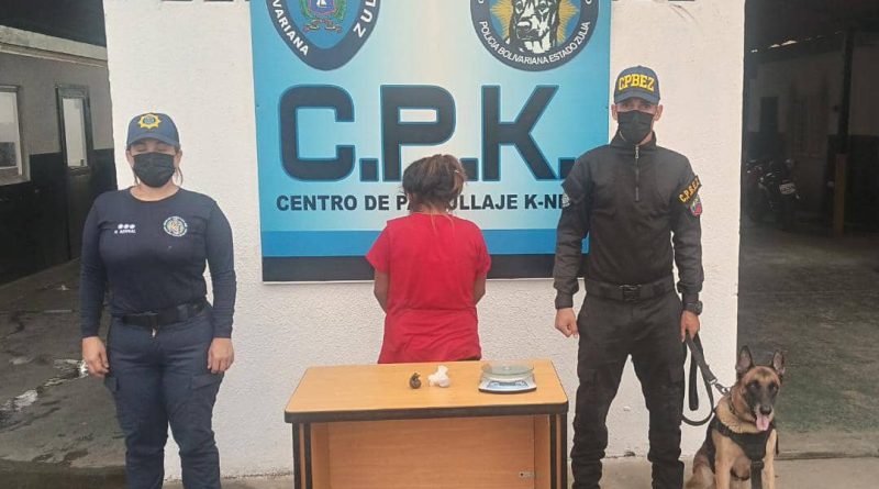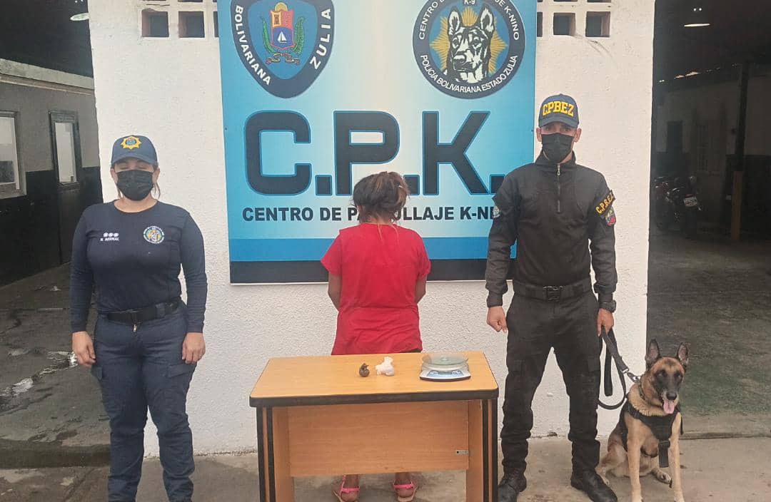 La otra detención se realizó en el bloque siete del Unicentro Las Pulgas, centro de Maracaibo, donde una comisión de Centro de Patrullaje K-nino (CPK), realizaban un recorrido preventivo por el mencionado mercado, al pasar por el área de verduras, el semoviente antidrogas, olfateo en uno de los bolsillos del pantalón de Maribel María González Montiel de 24 años de edad, sustancias alucinógenas, al realizar el chequeo se le encontró dos envoltorios con restos vegetales de presunta marihuana con un peso de 19 gramos.