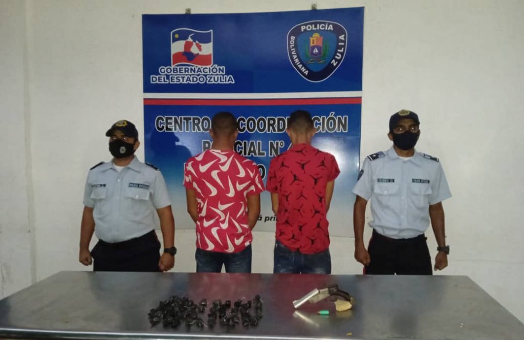 El primer caso se registró en el barrio La Gallera, donde patrulleros del Centro de Coordinación Policial Maracaibo Oeste, arrestaron a Jerwin José Segovia Pulgar de 22 años edad, quien estaba en compañía de un menor (16), en una moto FYN, color rojo, año 2011, en actitud sospechosa, al darle la voz de alto, éstos aceleraron el vehículo provocando una persecución, que terminó unos metros después, cuando a la moto se le explotó un caucho, lo que los obligó a detenerse, al bajar el menor arrojó al pavimento un arma de fuego no industrializada, calibre 38 milímetros, al ser abordados a Jerwin se le encontró en el bolsillo 41 bolsitas tipo cebollita con presunta marihuana, con 31 gramos de peso.