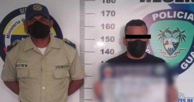 Mientras que en Sinamaica, municipio Guajira, uniformados del Centro de Coordinación Policial Municipio Indígena Guajira, apresaron a Ludwing Eziel Sánchez Gómez de 26 años, quien se desplazaba en transporte público, al ser abordado mostró una actitud nerviosa, al realizarle una inspección corporal se le encontró en el bolsillo del pantalón un bolsita con precinto abre fácil con una sustancia polvorienta de color blanco de presunta cocaína con un peso de ocho gramos.