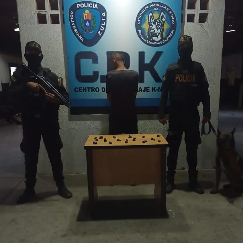 Una comisión del Centro de Patrullaje K-nino, en el barrio La Polar, parroquia Domitila Flores, municipio San Francisco, en horas de la noche aprehendió a Edgar de Jesús Duarte Rodríguez de 21 años de edad, quien tenía entre sus genitales 15 envoltorios con presunta marihuana con un peso de 35 gramos, éste fue señalado por la comunidad como expendedor de sustancias prohibidas.