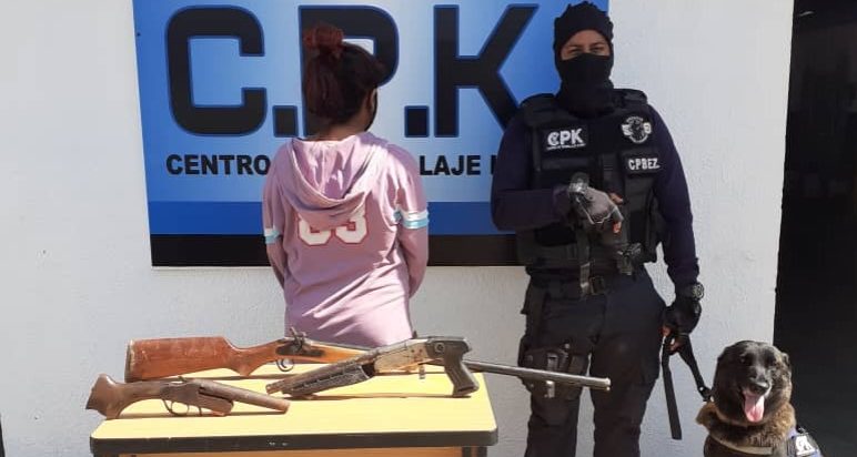 Inmediatamente el CPK se trasladó a la dirección aportada por el denunciante donde localizaron a “El Ángel” quien al notar la presencia policial emprendió veloz huida evadiendo el cerco policial, al realizarle una inspección ocular a la vivienda, lograron capturar a una mujer –cómplice del evadido- y colectar tres armas de fuego tipo escopetas, por lo que fue llevada a la sede policial a disposición de la Fiscalía del Ministerio Público.