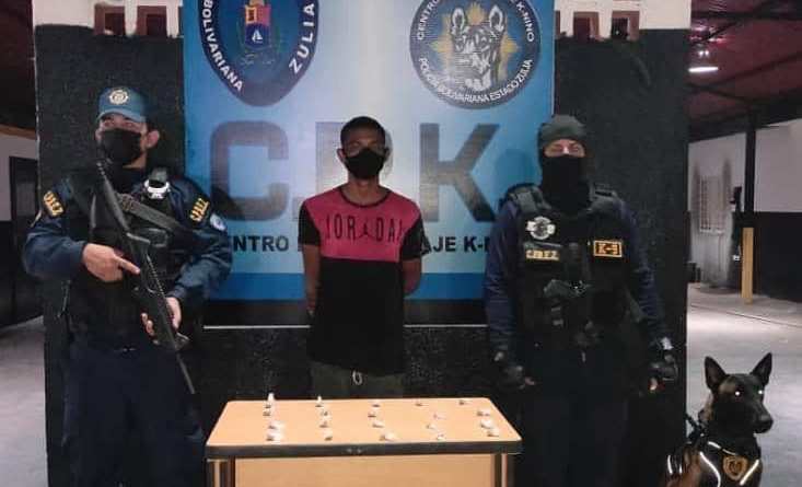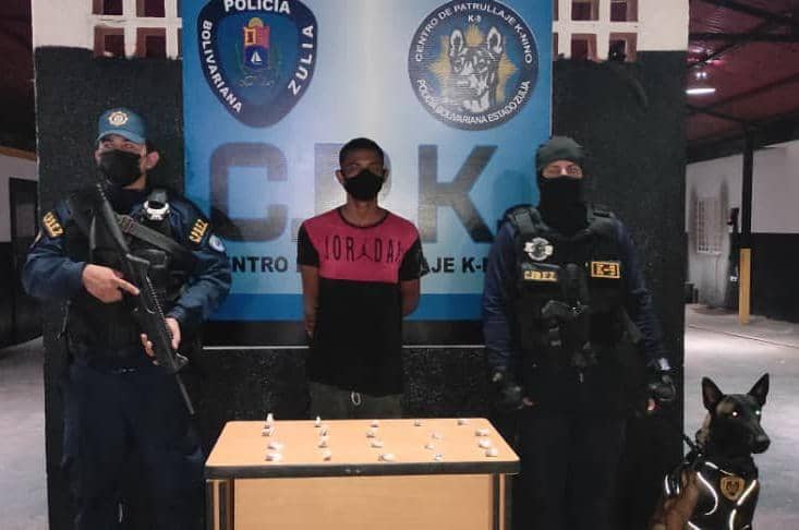 Una comisión del Centro de Coordinación Policial Patrullaje K-nino (CPK) del Cuerpo de Policía del estado Zulia (Cpez), capturó en flagrancia a Reny Jose Salomón Hernández con 20 envoltorios de presunta marihuana con un peso total de 20 gramos, el procedimiento se llevó a cabo en el sector Los Mangos, parroquia Idelfonso Vásquez del municipio Maracaibo, así lo informó el Comisionado Jefe Sergio Villasmil Rondón director general del Cpez.