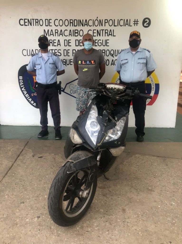 Villasmil comentó que el delincuente se trasladaba en una moto marca Bera, modelo BR 150, color negro, placas AG5A75D, al notar la presencia policial emprendió veloz huida, iniciándose un seguimiento que culminó a pocas cuadras del lugar luego que Zambrano perdiera el control de la motocicleta y cayeran al pavimento, en medio del escape ingresó a una residencia donde se ocultó detrás de una nevera; los gritos de auxilio de la dueña alertaron a los uniformados que inmediatamente dieron respuesta arrestando al antisocial.