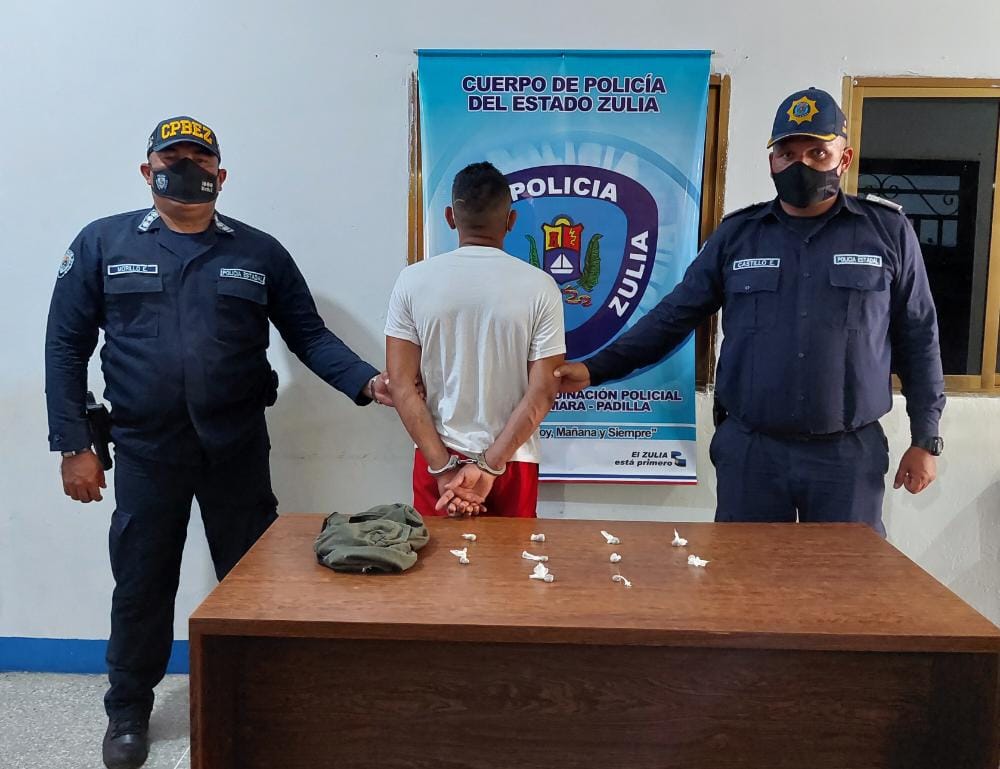 Motorizados del Centro de Coordinación Policial Eje Mara-Padilla, procesaron la detención de José Domingo Rosales Palmar de 31 años de edad, con 10 envoltorios de presunta marihuana, con un peso de once gramos, según lo informó el C/J Sergio Villasmil, director general del Cuerpo de Policía del estado Zulia (Cpez).