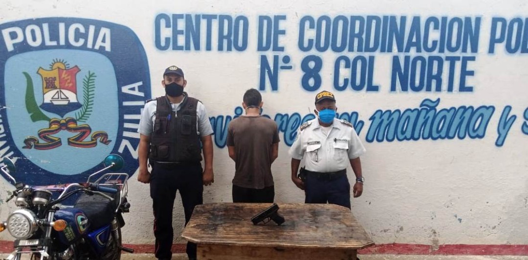 Ante múltiples denuncias por los constantes robos y venta de drogas en la parroquia San Benito del municipio Cabimas, funcionarios del Centro de Coordinación Policial Col Norte del Cuerpo de Policía del estado Zulia (Cpez), avistaron a un sujeto que se movilizaba en una motocicleta, con actitud sospechosa, los oficiales dieron la voz de alto y el individuo se lanzó del vehículo para emprender la huida a pie. En instantes fue alcanzado por los uniformados quienes procedieron a realizar el arresto.