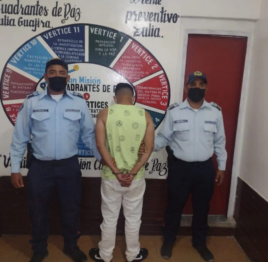 El otro arresto lo realizaron efectivos del Centro de Coordinación Policial Municipio Indigena Guajira, en pleno centro de Sinamaica del municipio Guajira, donde apresaron a Jefferson José Caldera Ortega (29), requerido por el juzgado segundo de control, por violencia contra la mujer desde el 21 de febrero del año 2019, ambos caso fueron pasados al Ministerio Público.
