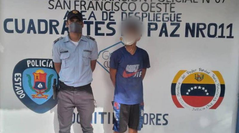 William José Arrias Morán, alias “El Ruso” fue detenido por funcionarios del Cuerpo de Policía del estado Zulia (Cpez), adscritos al Centro de Coordinación Policial San Francisco Oeste, por el delito de actos lascivos contra una adolescente de 12 años de edad, hecho suscitado en el barrio La Modelo, avenida 48G con calle 76, parroquia Domitila Flores, municipio San Francisco.