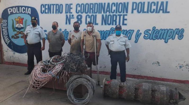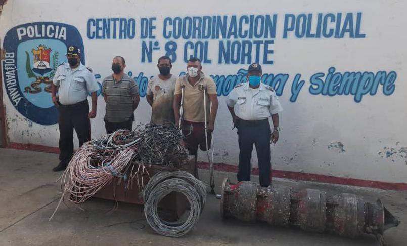 En medio de una persecución que comenzó en aguas del Lago de Maracaibo, con oficiales del Centro de Coordinación Policial Patrullaje Lacustre y terminó en las Costa del municipio Cabimas, uniformados del Centro de Coordinación Policial Col Norte, lograron la captura de Alberto José Gómez Ferrer (45), Endry Enrique Lozano Rincón (41) y Yoel José Gutiérrez Gutiérrez (50), dedicados a sustraer material estratégico del Lago de Maracaibo, según lo informó el C/J Sergio Villasmil director general del Cuerpo de Policía del estado Zulia (Cpez).