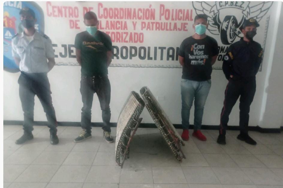 Oficiales de la Estación Policial Irama del Cuerpo de Policía del estado Zulia (Cpez), lograron la captura en flagrancia de dos sujetos por hurtar dos paneles de aires acondicionados del Hospital Universitario de Maracaibo (HUM), ubicado en la parroquia Chiquinquirá de la capital zuliana, así lo informó en C/J Sergio Villasmil director del Cpez.