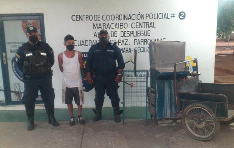 Los oficiales recibieron la denuncia por parte de los trabajadores de la asociación, quienes manifestaron que dentro de las inmediaciones se encontraba el hombre, logrando sustraer un filtro de agua y una reja lo cual trasladaba en una carreta, tipo triciclo por lo que fue detenido inmediatamente.
