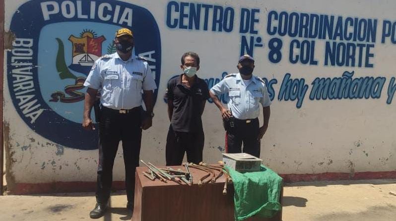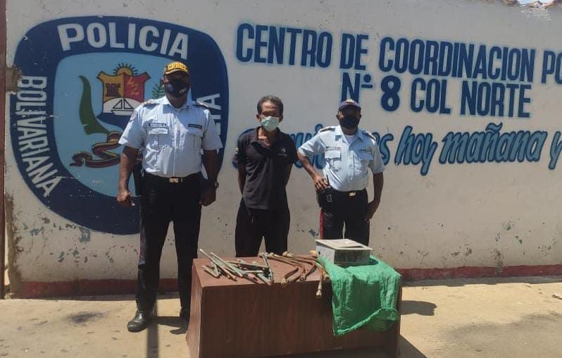 En horas de la tarde de este miércoles, patrulleros del Centro de Coordinación Policial Col Norte, aprehendieron en flagrancia a Juan Carlos Bolívar de 48 años de edad, cuando se encontraba en la parte de atrás del Hospital Clínico, ubicado en la parroquia La Rosa del municipio Cabimas, hurtando material estratégico.