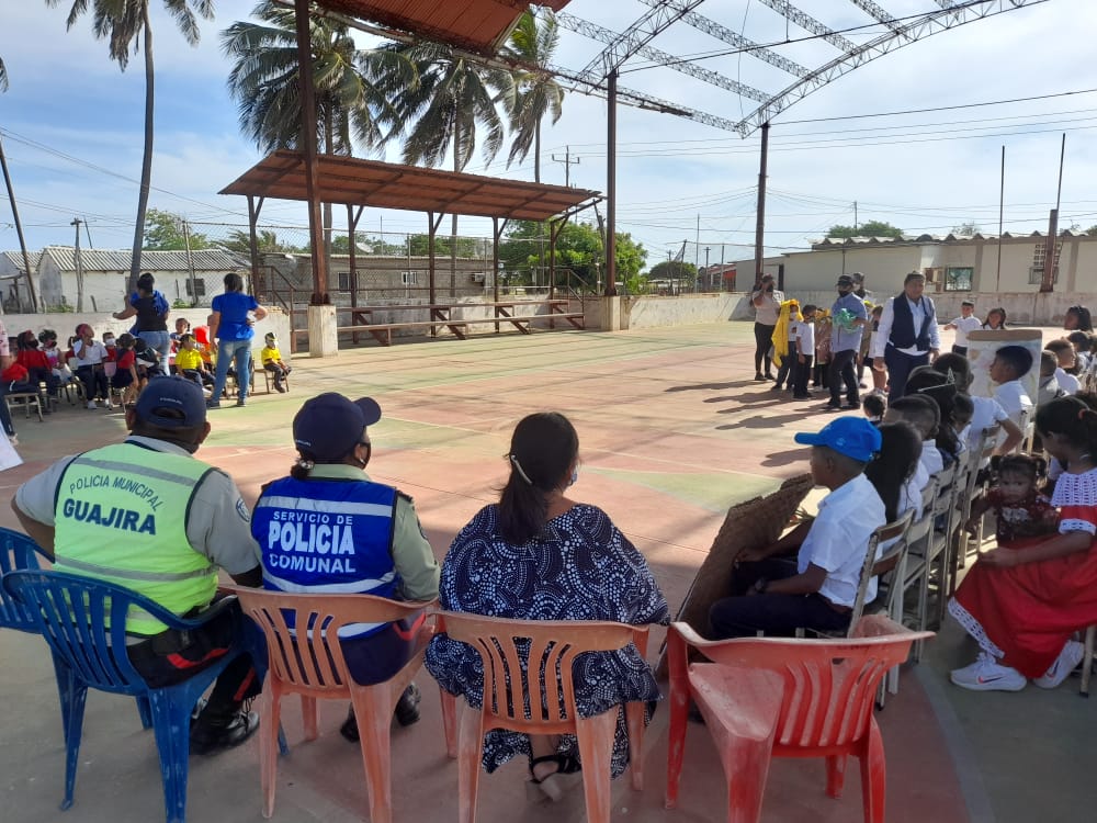 Este viernes, los oficiales del Instituto Autónomo de Policía Municipal de la Guajira (PoliGuajira) con el objetivo de hacerle frente al acoso escolar también conocido como Bullying llevaron campañas preventivas para frenar estos incidentes en la escuela Germán Antonio Mappari.