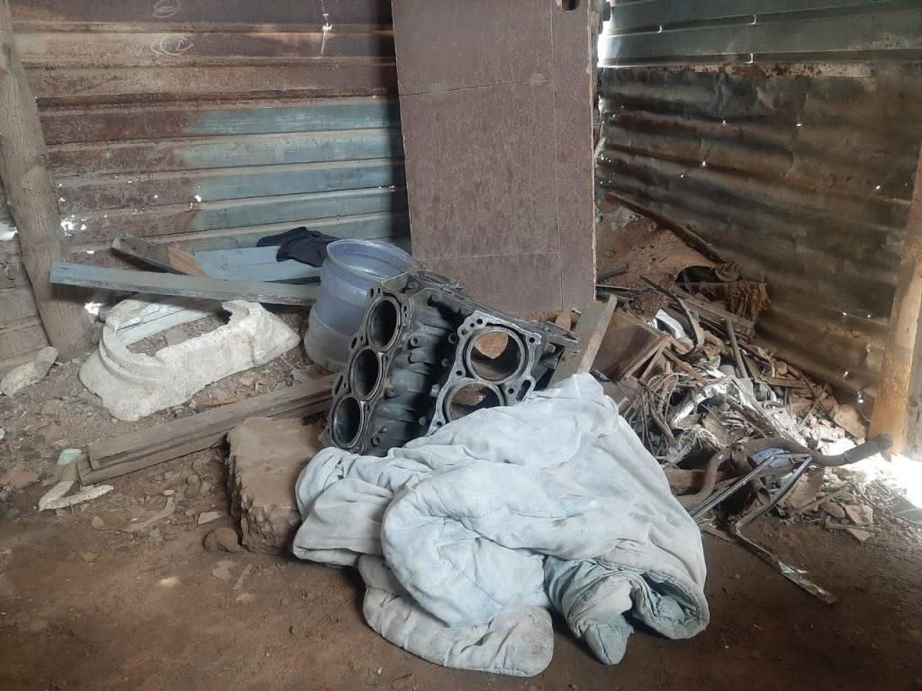 En el sitio se colectó varias piezas de diferentes vehículos, entre ellas motores, cajas, rines, capot, algunas partes de motos, pinzas y herramientas para cortar cables y metales.