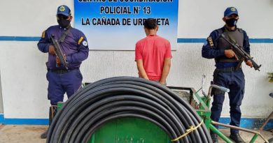 En horas de la tarde, un ciudadano se dirigió hasta el Comando Policial Canino, ubicada en la Plaza Ziruma, para denunciar que un hombre y dos adolescentes le habían robado tres lámparas led de 400W, además de cortarle todo el cercado eléctrico a su propiedad, situada en el sector Santa María frente al Colegio La Epifanía, parroquia Chiquinquirá.