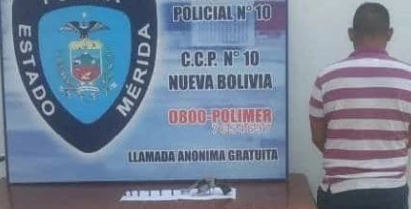 El ciudadano fue capturado en horas de la mañana de este domingo en el sector La Florida de Nueva Bolivia, en el municipio Tulio Febres Cordero del estado Mérida, sitio en el que los uniformados estaban cumpliendo con las políticas en materia de seguridad emanadas por el Gobernador de la entidad merideña @jehysonguzman bajo las instrucciones del Presidente, Nicolas Maduro.