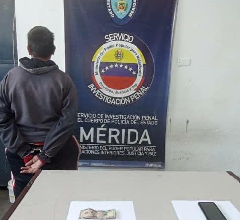 El individuo fue capturado en la avenida Las Américas de la capital merideña, específicamente en las cercanías de la estación de servicios Alba Lago.