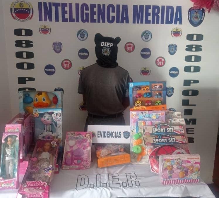 Funcionarios adscritos al eje Mérida de la Dirección de Inteligencia Estratégica y Preventiva (DIEP) del Instituto Autónomo Policía del Estado Mérida (Iapem) capturaron a un ciudadano de 63 años de edad, por revender juguetes pertenecientes a la gobernación de Mérida.