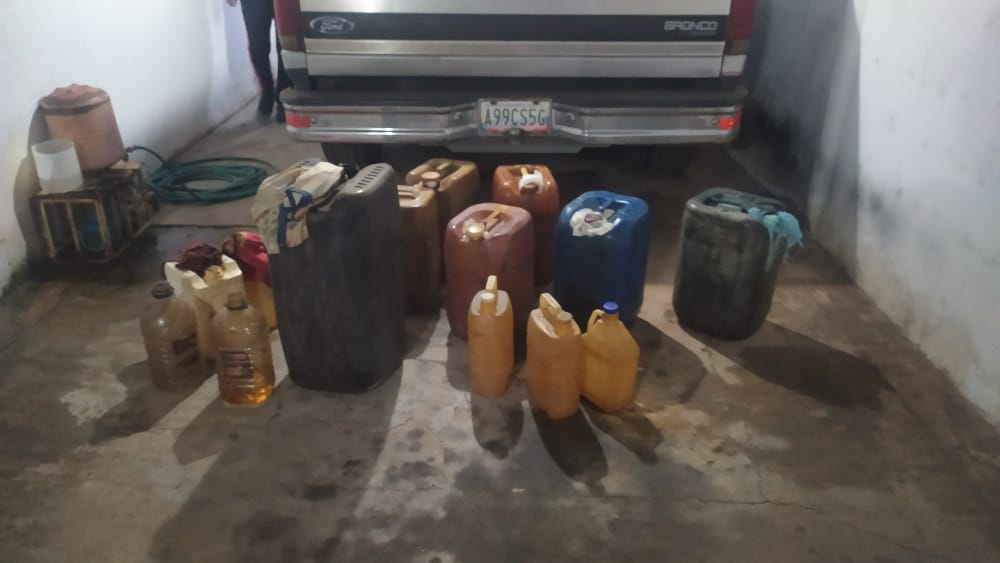 Dentro de la vivienda los patrulleros avistaron en la parte trasera varios envases plásticos contentivos de combustible con un total aproximado de 160 litros, así mismo se llevó a cabo la retención de (01) vehículo marca: FORD, modelo: BRONCO, color: GRIS Y PLATA, placa: A99CS5G, en el cual presuntamente era utilizado para sustraer y trasladar dicho combustible para la venta ilícita.