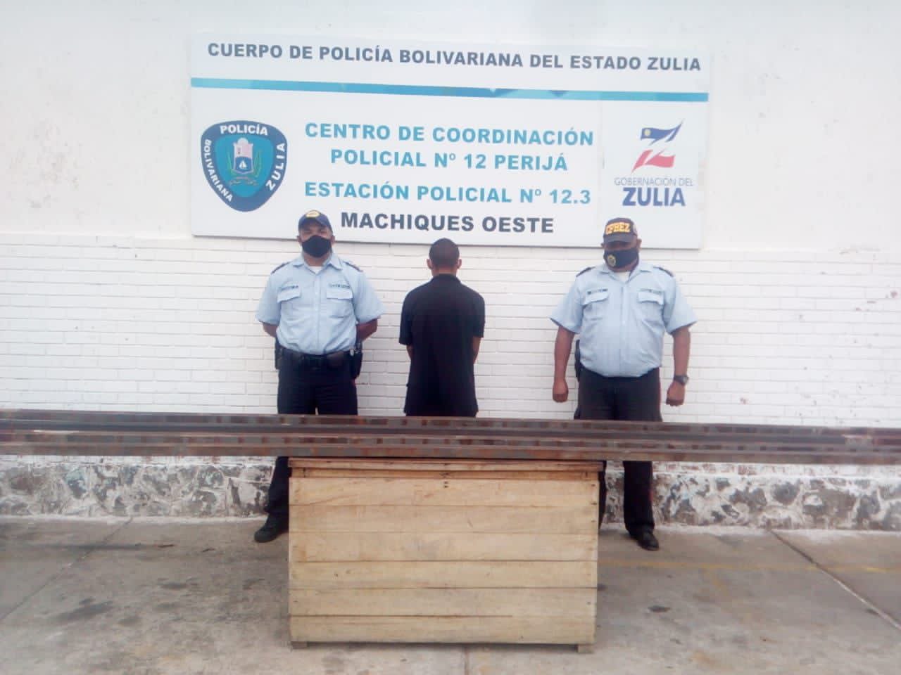 El sujeto fue encontrado a pocos metros del lugar, al sentirse descubierto confesó donde había ocultado el material hurtado guiando a los uniformados hasta el lugar. El hombre quedó en la sede del Centro de Coordinación Policial Perijá, puesto a disposición del Ministerio Público.