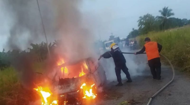 Con pérdida total quedó un vehículo ford fiesta, año 2011, color plomo luego de que por presunta fallas mecánicas se incendiara en la carretera que conduce entre la población de El Chivo-4 Esquina, municipio Francisco Javier Pulgar del estado Zulia.