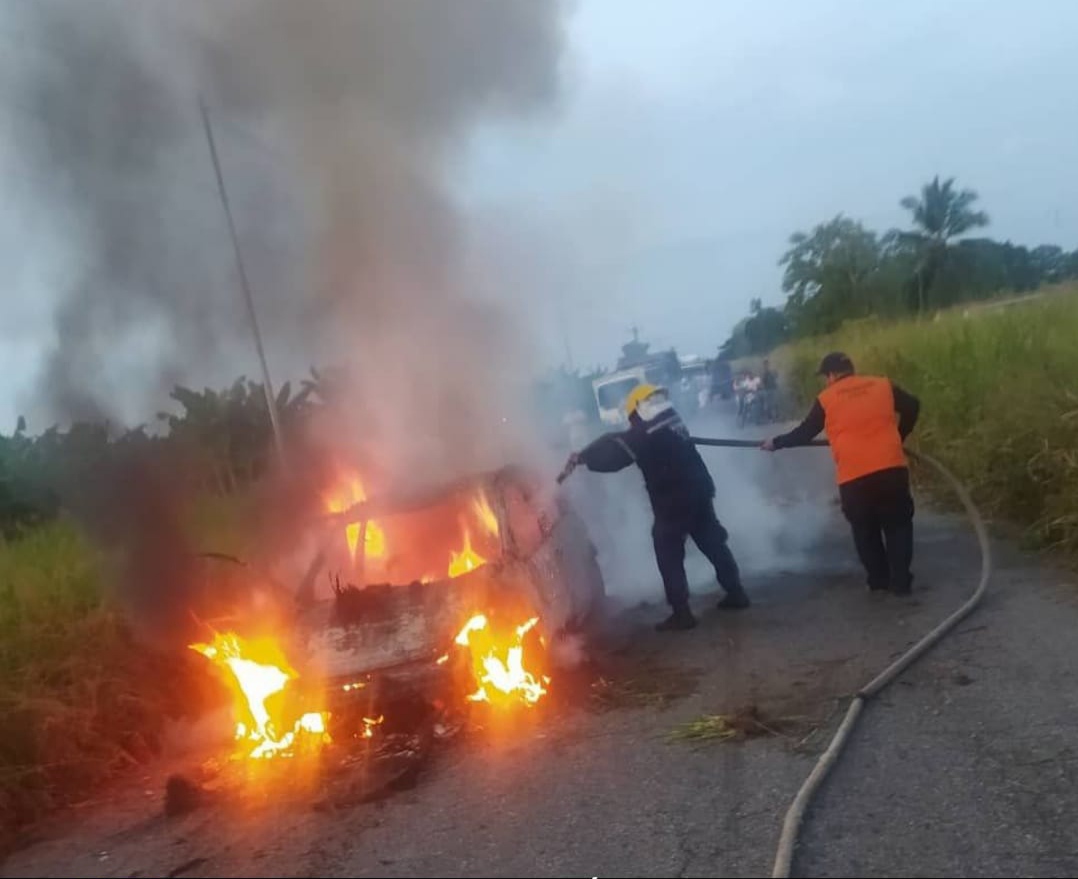 Por presuntas fallas mecánicas se incendia un vehículo en la carretera que conduce entre El Chivo- 4 Esquina
